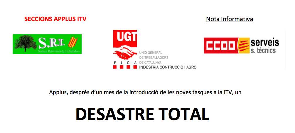 Nota informativa Applus, després d’un mes de la introducció de les noves tasques a la...